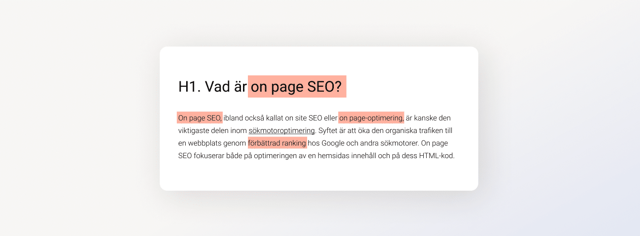 Vissa insatser ger mer effekt än andra, men det är i samspelet som de får störst effekt. Låt oss ta en närmare titt på olika rankingfaktorer inom on page SEO.