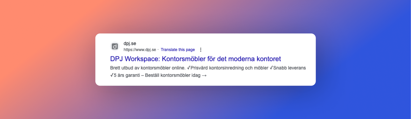 Detta åstadkommer du genom att inkludera relevanta sökord eller sökfraser i titeln som utlovar att din sida har just det innehåll som användaren letar efter – helst så tidigt som möjligt för att öka relevansen och därmed synligheten. För att skapa trovärdighet kan du också inkludera ert varumärkesnamn som en tydlig avsändare.